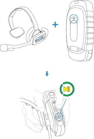 - Press and hold the Plus (+) and Minus (-) buttons on the Talkman device for two seconds to manually initiate a search for wireless headsets.