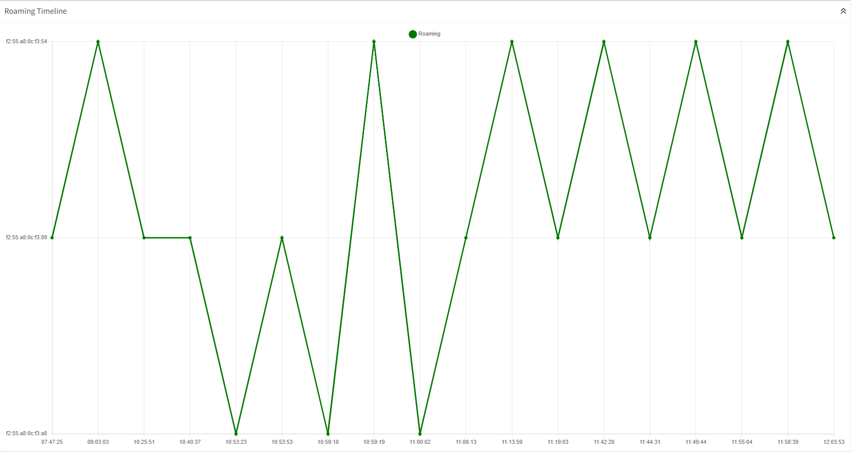 - Connected Status: This information indicates that the device has successfully connected to a new Access Point (green lines in the roaming list).