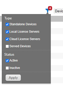 You can filter the device list by either Local License Servers (VoiceConsole On Prem deployments), Cloud License Server (VoiceConsole SaaS deployments), or both.
