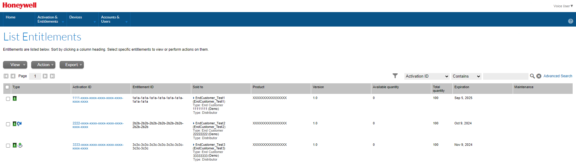 From the Home page, select Activation & Entitlements > List Entitlements. The Entitlements list is displayed.