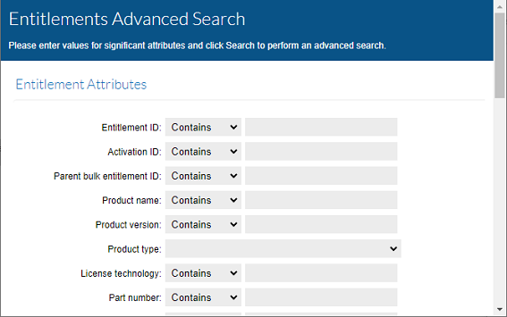There are several categories available within the advanced search. Many of these do not apply to Voice licenses, such as product version. Searching for these items does not return any results.