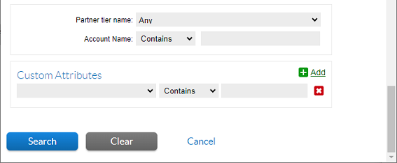 Click + Add to search for multiple criteria and X to remove the criteria from the list. Click Search to view the results.