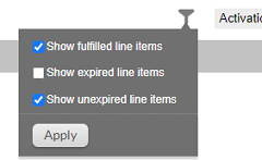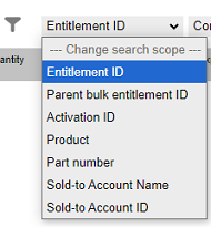 There are several options available from the entitlements list. At any time, you can clear the search results by clicking the X icon. This clears the search results but does not affect any filter applied.