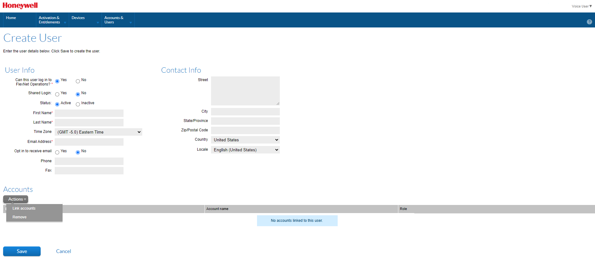 An account and role must be assigned to the new user. Click on Actions > Link accounts. The Select Accounts window pops up.